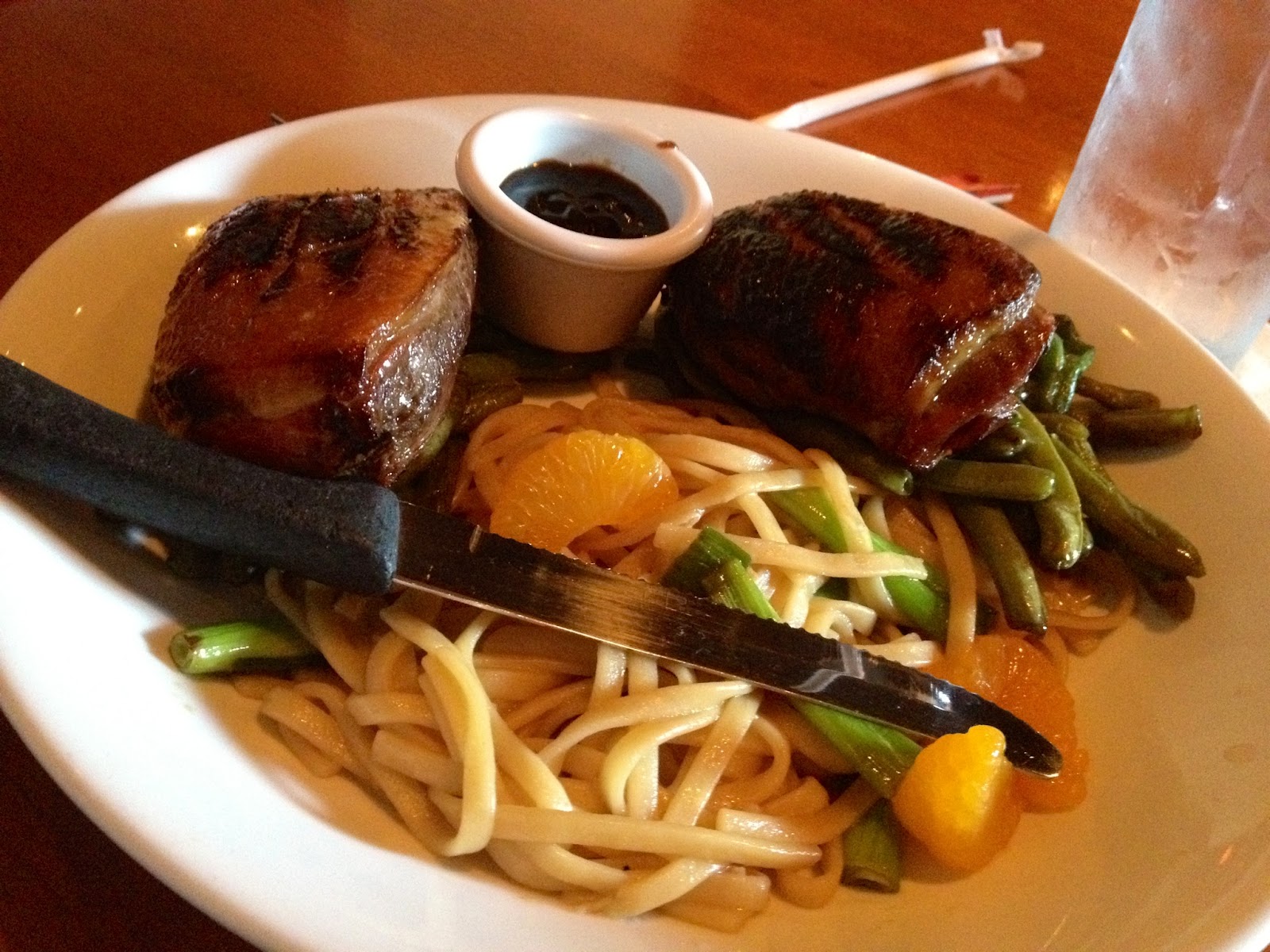 | my dinner: roast duck with sesame ginger noodles and green beans |